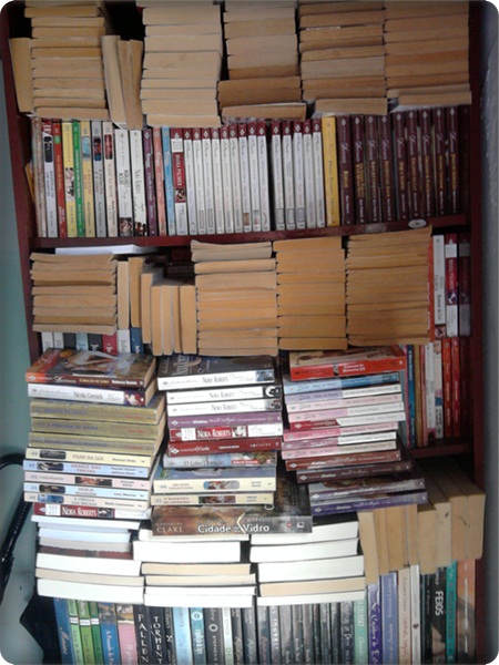 Para todos que pediram para ver uma foto da minha estante mais que bagunçada, mas em breve vou corrigir isso certo, aí está.